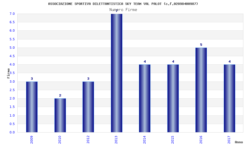 | Anno | Firme | Importi | Media | Naz. | Reg. | Prov. | Comu. |