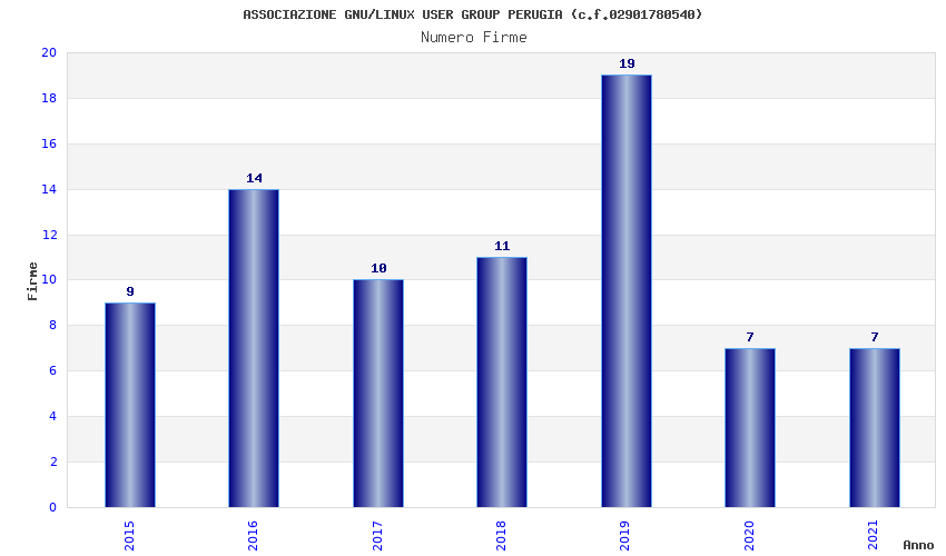 | Anno | Firme | Importi | Media | Naz. | Reg. | Prov. | Comu. |