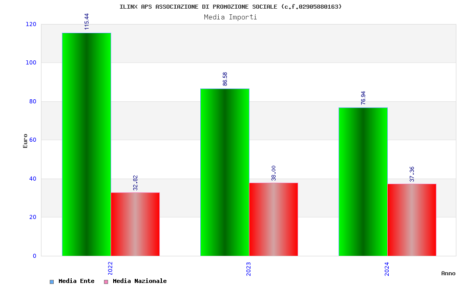 | Anno | Firme | Importi | Media | Naz. | Reg. | Prov. | Comu. |