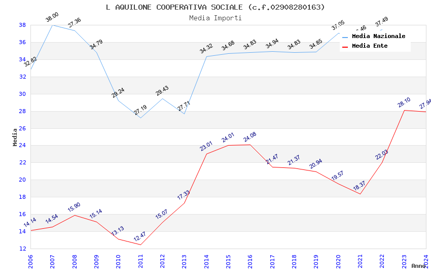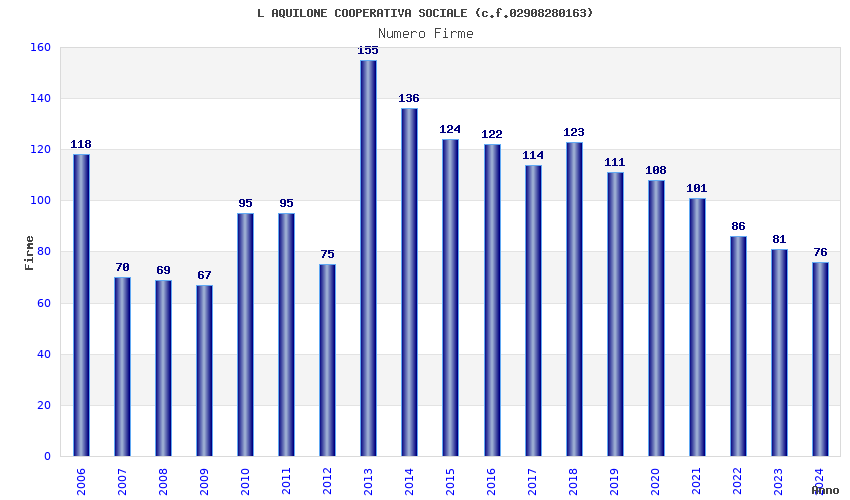 | Anno | Firme | Importi | Media | Naz. | Reg. | Prov. | Comu. |