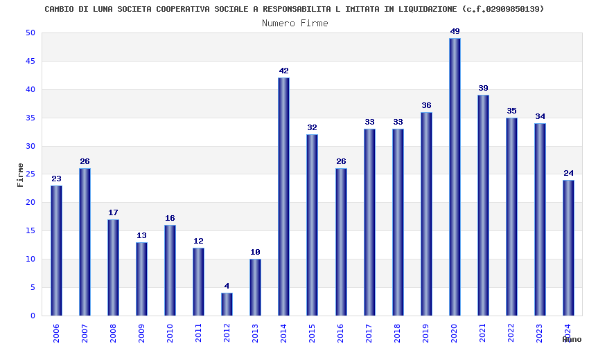 | 2020 | 49 | 1.265,61 | 25,83 | 32.075 | 6.909 | 313 | 10 |