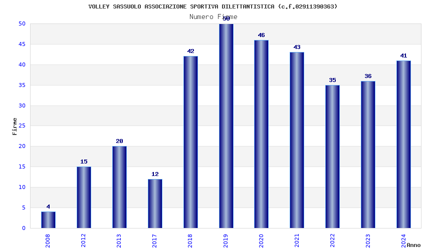 | Anno | Firme | Importi | Media | Naz. | Reg. | Prov. | Comu. |