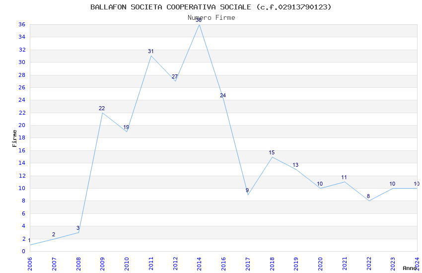 | 2014 | 36 | 406,72 | 11,30 | 40.547 | 8.505 | 805 | 9 |
