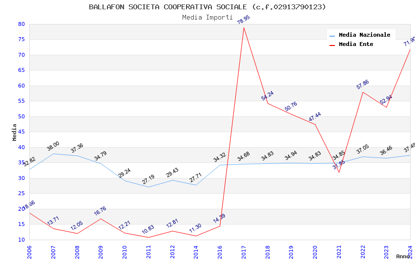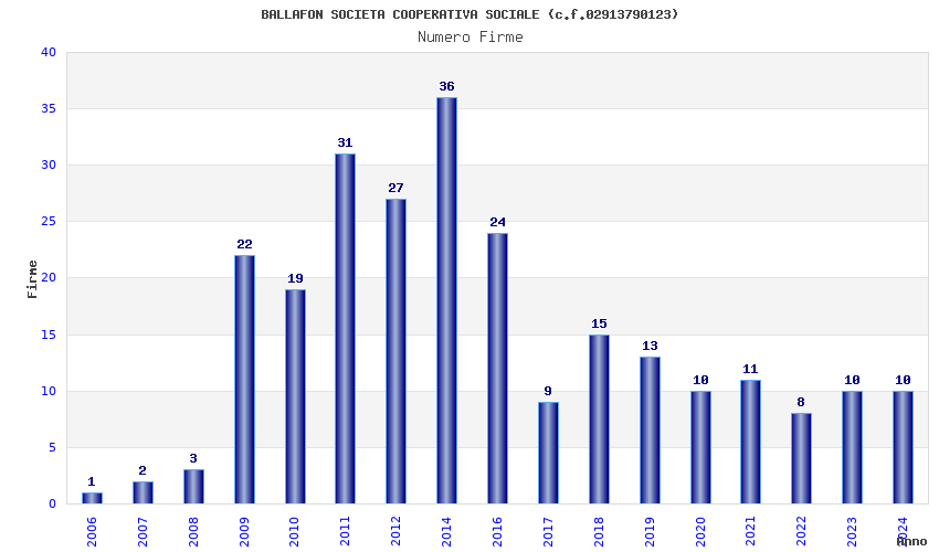 | Anno | Firme | Importi | Media | Naz. | Reg. | Prov. | Comu. |