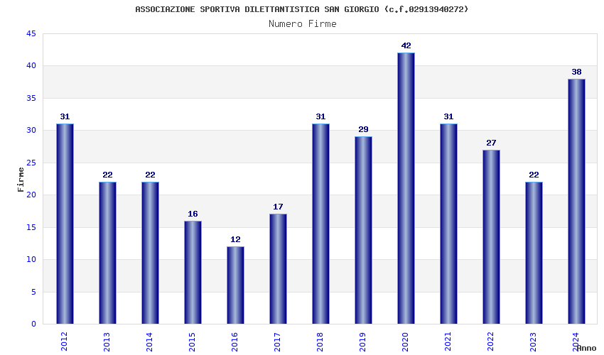 | Anno | Firme | Importi | Media | Naz. | Reg. | Prov. | Comu. |