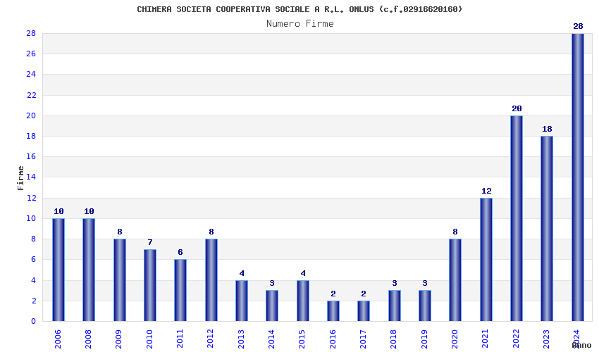 | Anno | Firme | Importi | Media | Naz. | Reg. | Prov. | Comu. |