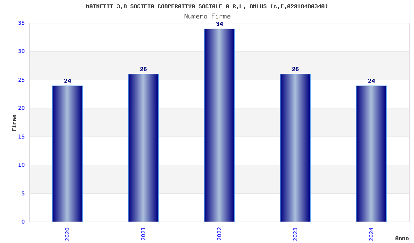 | Anno | Firme | Importi | Media | Naz. | Reg. | Prov. | Comu. |