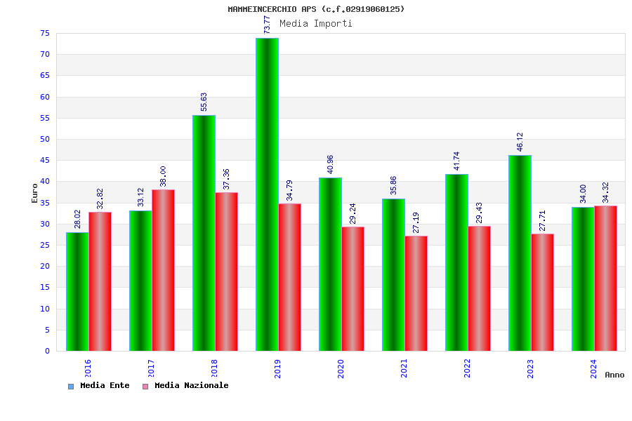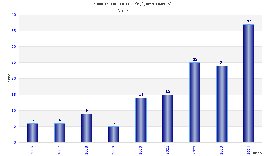 | Anno | Firme | Importi | Media | Naz. | Reg. | Prov. | Comu. |