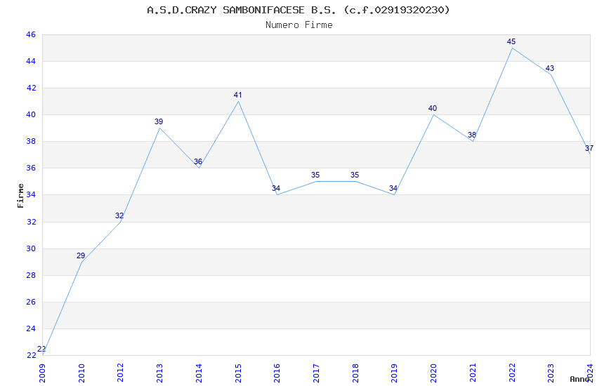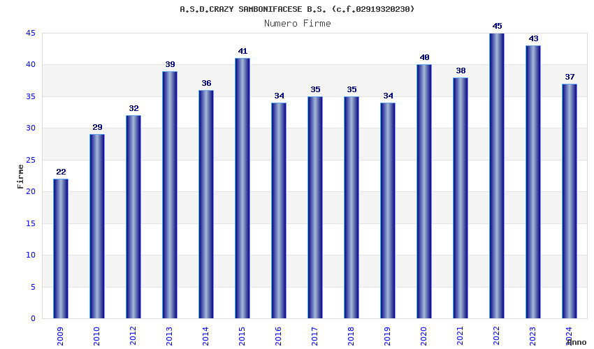 | 2022 | 45 | 1.293,58 | 28,75 | 30.342 | 2.917 | 567 | 16 |
