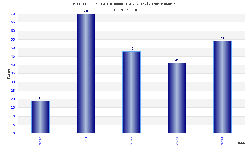 | Anno | Firme | Importi | Media | Naz. | Reg. | Prov. | Comu. |