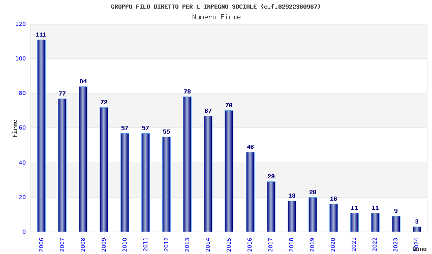 | Anno | Firme | Importi | Media | Naz. | Reg. | Prov. | Comu. |