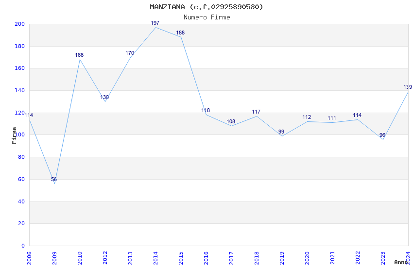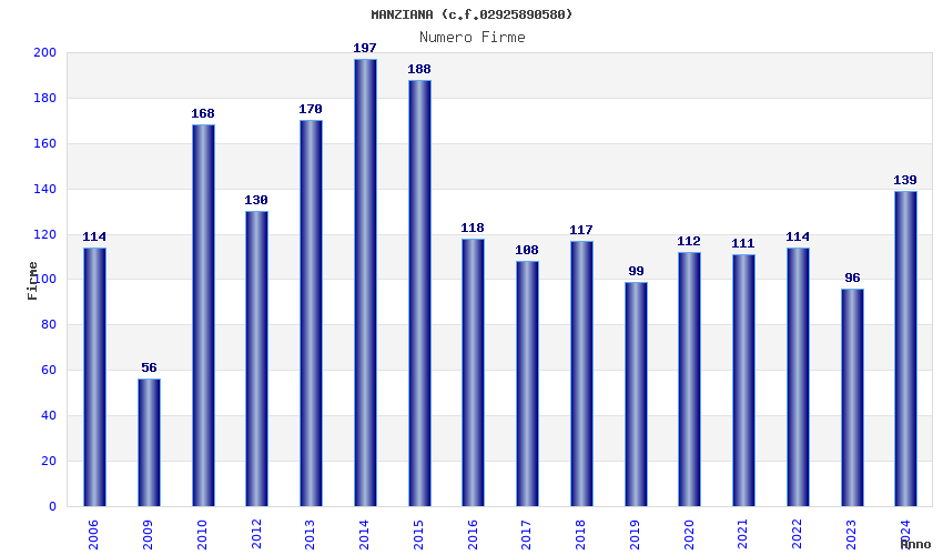 | Anno | Firme | Importi | Media | Naz. | Reg. | Prov. | Comu. |