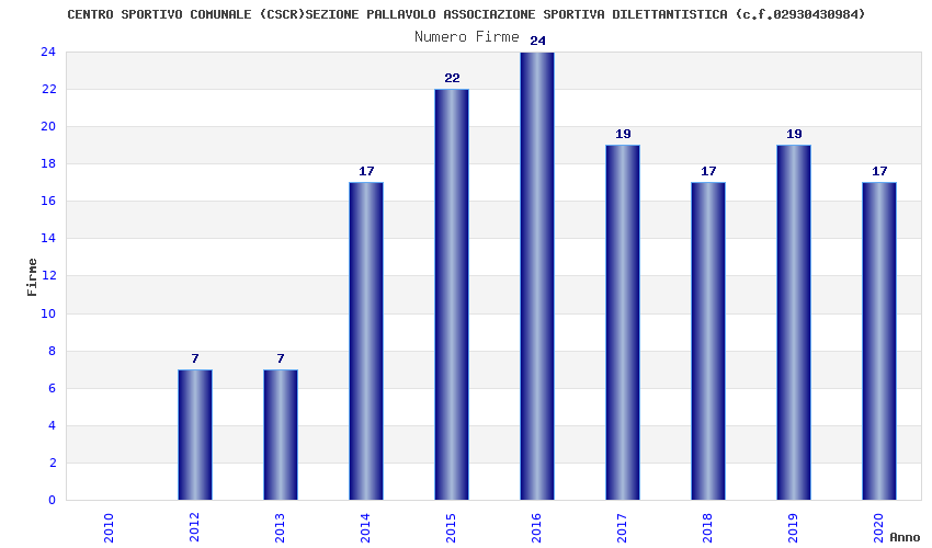 | Anno | Firme | Importi | Media | Naz. | Reg. | Prov. | Comu. |