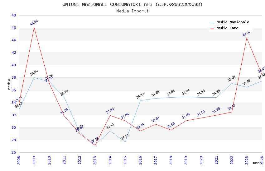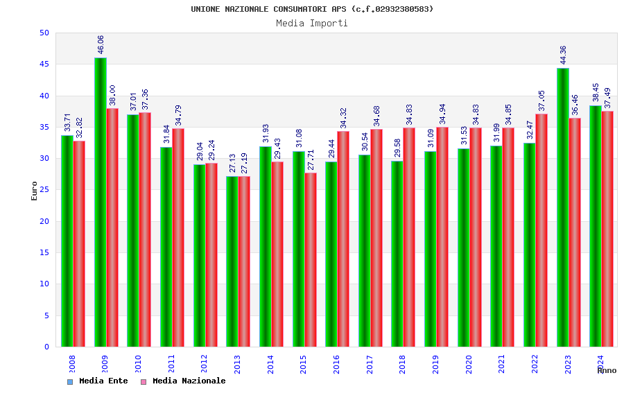 | Anno | Firme | Importi | Media | Naz. | Reg. | Prov. | Comu. |