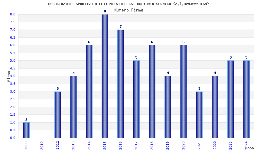 | Anno | Firme | Importi | Media | Naz. | Reg. | Prov. | Comu. |