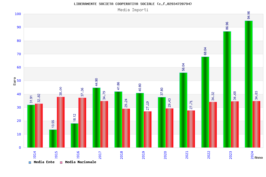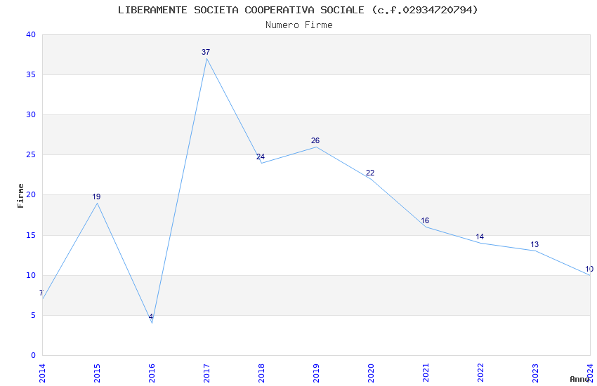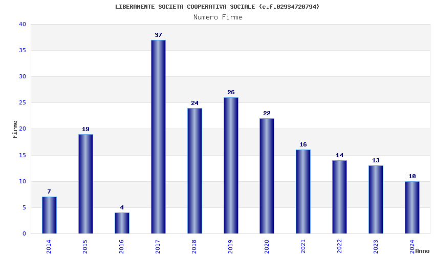 | Anno | Firme | Importi | Media | Naz. | Reg. | Prov. | Comu. |