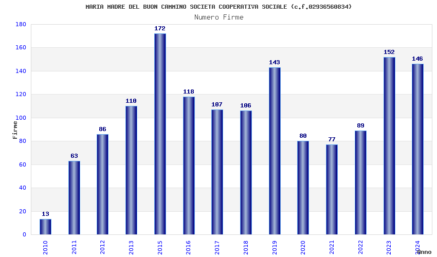 | Anno | Firme | Importi | Media | Naz. | Reg. | Prov. | Comu. |