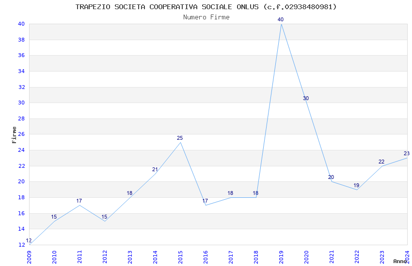 | 2024 | 23 | 369,48 | 16,06 | 56.365 | 10.633 | 1.371 | 19 |