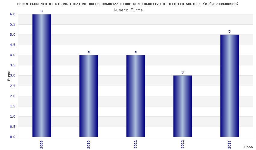 | Anno | Firme | Importi | Media | Naz. | Reg. | Prov. | Comu. |