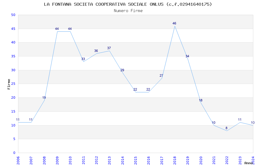 | 2010 | 44 | 804,61 | 18,29 | 25.895 | 5.753 | 755 | 15 |