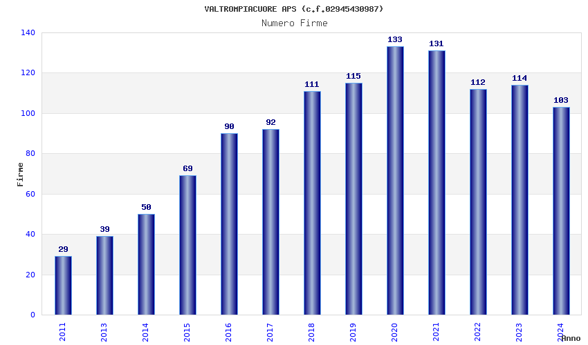 | 2020 | 133 | 20.616,24 | 155,01 | 2.104 | 548 | 41 | 1 |
