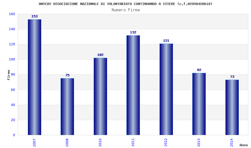 | Anno | Firme | Importi | Media | Naz. | Reg. | Prov. | Comu. |