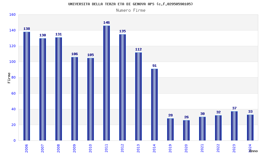 | Anno | Firme | Importi | Media | Naz. | Reg. | Prov. | Comu. |