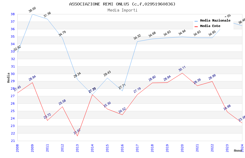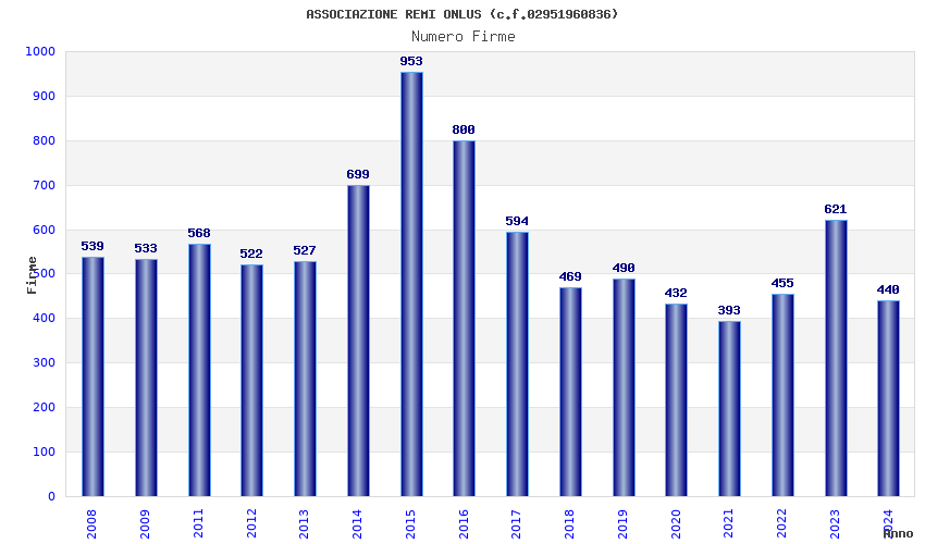 | Anno | Firme | Importi | Media | Naz. | Reg. | Prov. | Comu. |