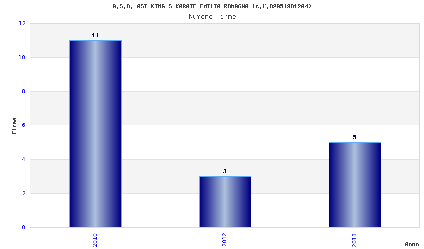 | Anno | Firme | Importi | Media | Naz. | Reg. | Prov. | Comu. |