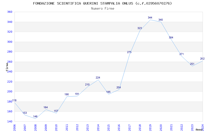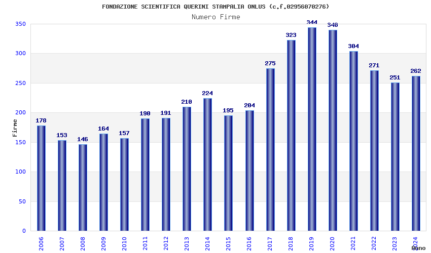| Anno | Firme | Importi | Media | Naz. | Reg. | Prov. | Comu. |
