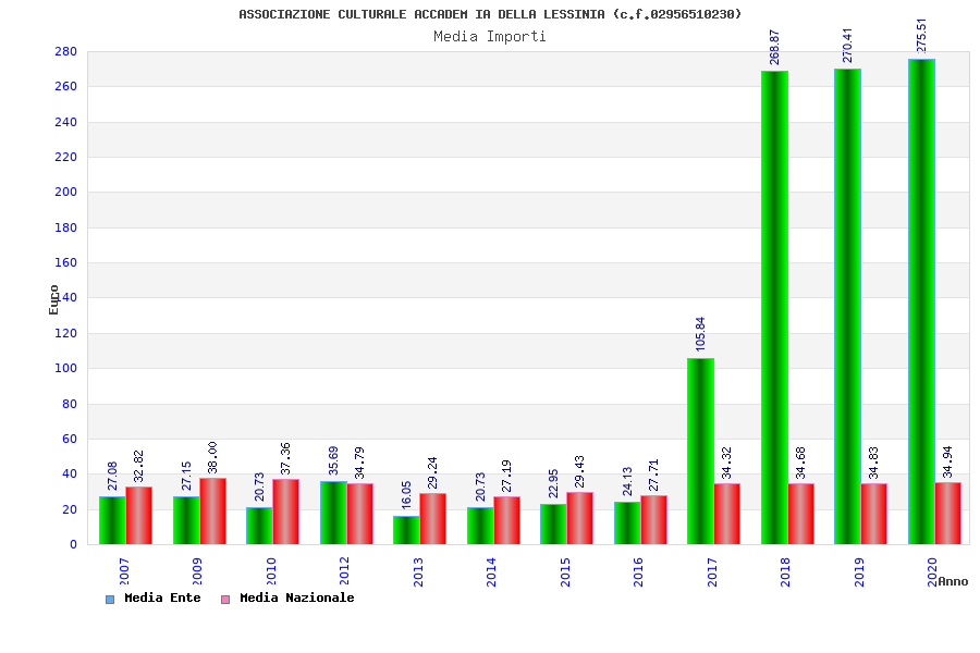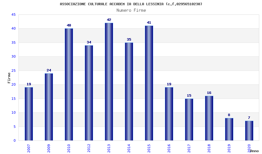 | Anno | Firme | Importi | Media | Naz. | Reg. | Prov. | Comu. |