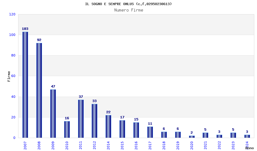 | Anno | Firme | Importi | Media | Naz. | Reg. | Prov. | Comu. |