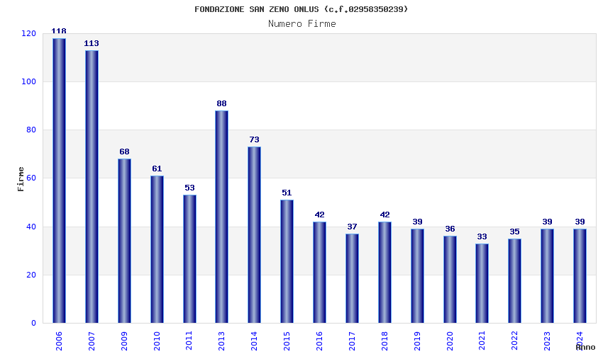 | Anno | Firme | Importi | Media | Naz. | Reg. | Prov. | Comu. |