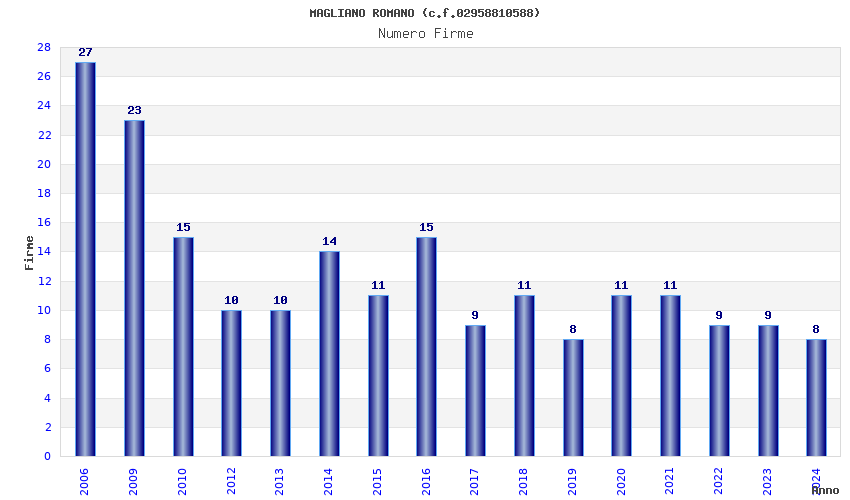 | Anno | Firme | Importi | Media | Naz. | Reg. | Prov. | Comu. |