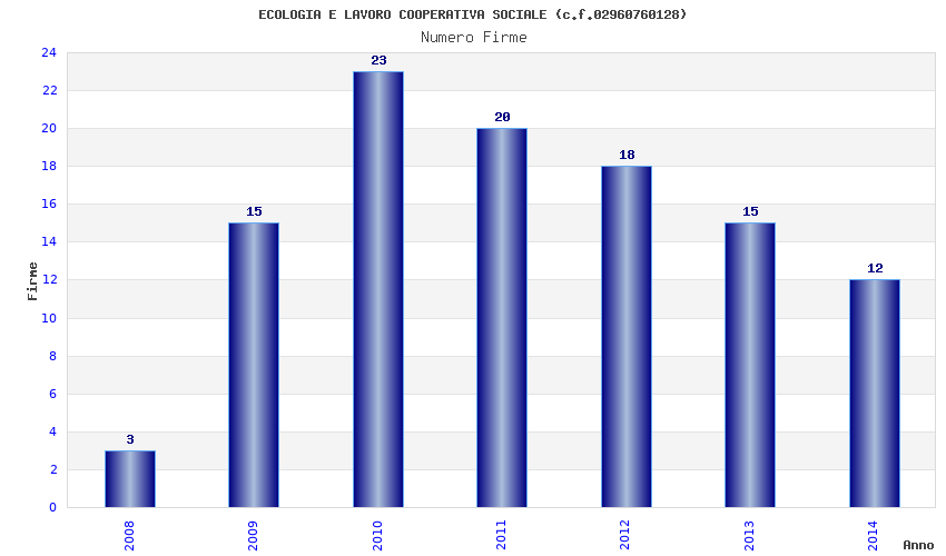 | Anno | Firme | Importi | Media | Naz. | Reg. | Prov. | Comu. |