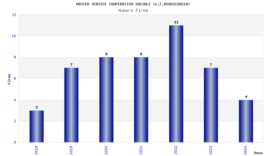 | Anno | Firme | Importi | Media | Naz. | Reg. | Prov. | Comu. |