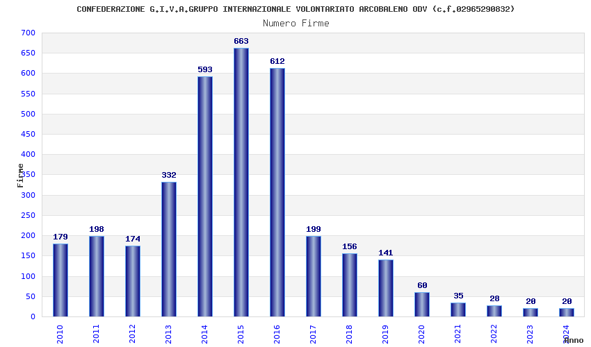 | Anno | Firme | Importi | Media | Naz. | Reg. | Prov. | Comu. |
