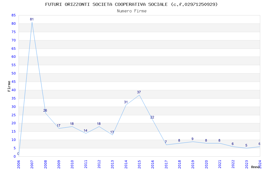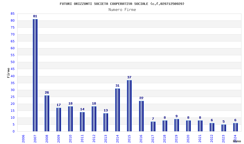 | Anno | Firme | Importi | Media | Naz. | Reg. | Prov. | Comu. |