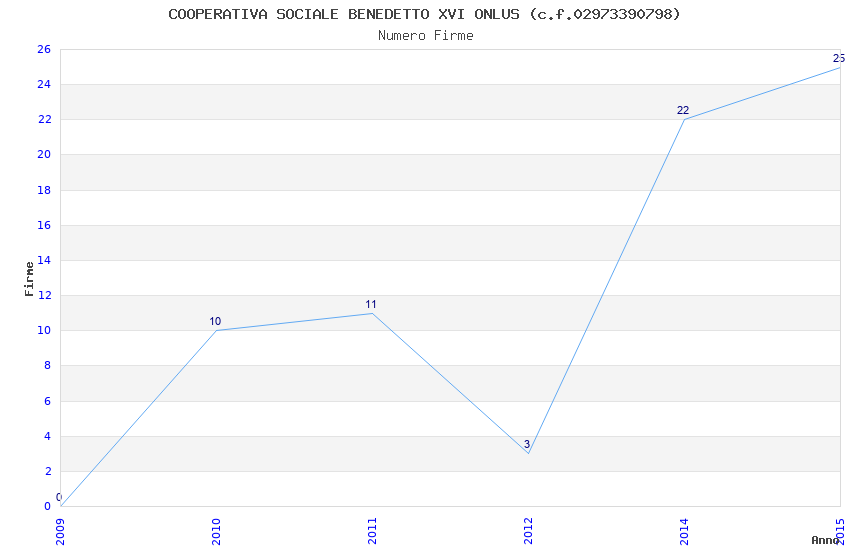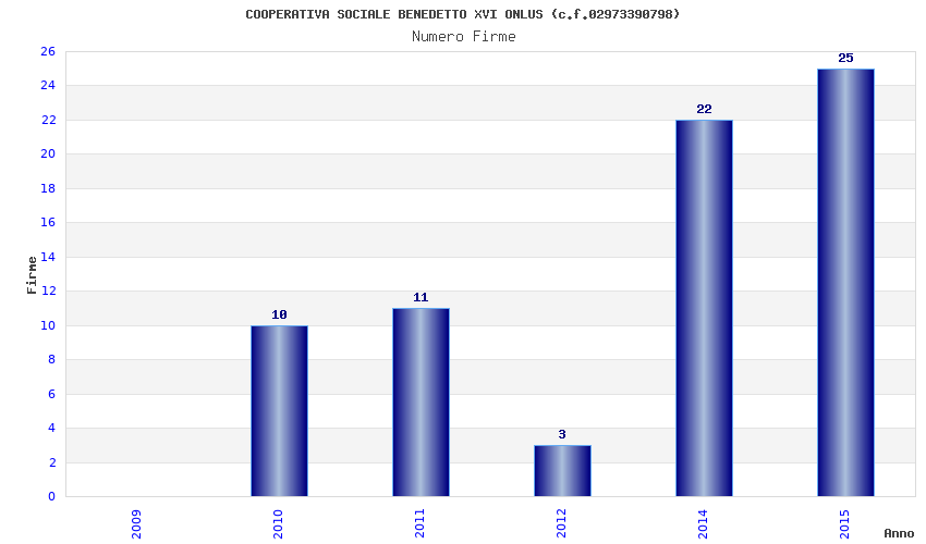 | Anno | Firme | Importi | Media | Naz. | Reg. | Prov. | Comu. |