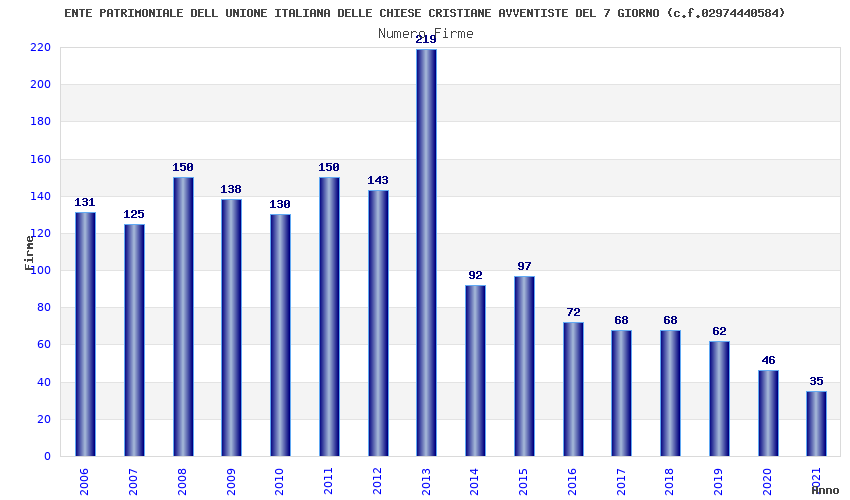 | Anno | Firme | Importi | Media | Naz. | Reg. | Prov. | Comu. |