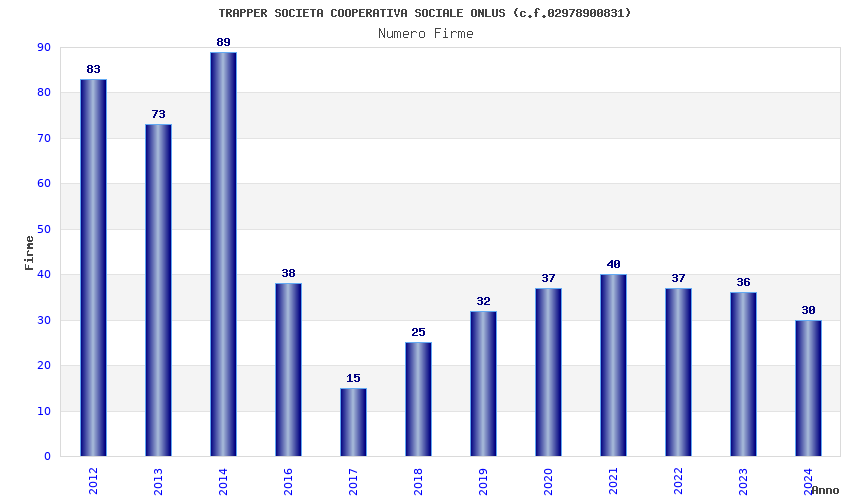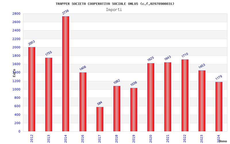 | Anno | Firme | Importi | Media | Naz. | Reg. | Prov. | Comu. |