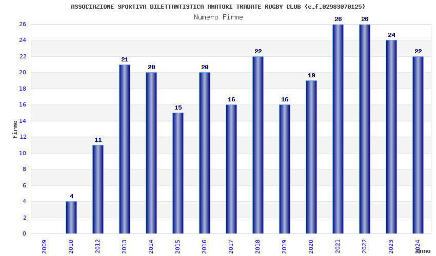 | 2022 | 26 | 1.328,12 | 51,08 | 29.890 | 6.119 | 495 | 11 |
