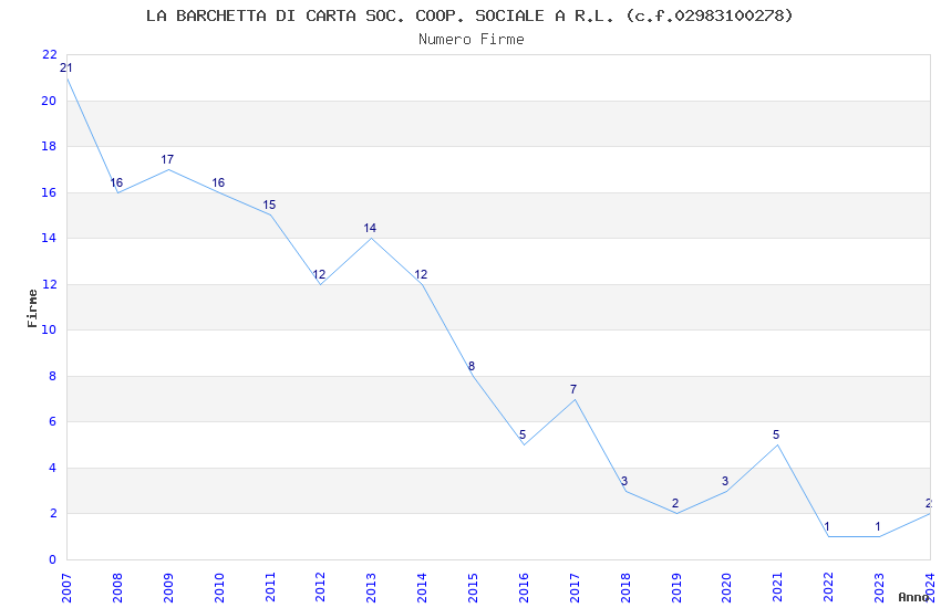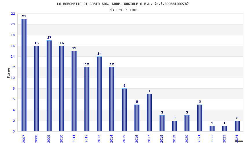 | Anno | Firme | Importi | Media | Naz. | Reg. | Prov. | Comu. |
