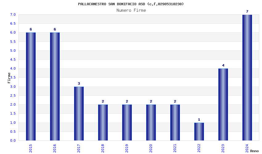 | Anno | Firme | Importi | Media | Naz. | Reg. | Prov. | Comu. |