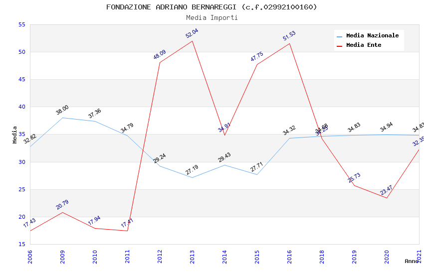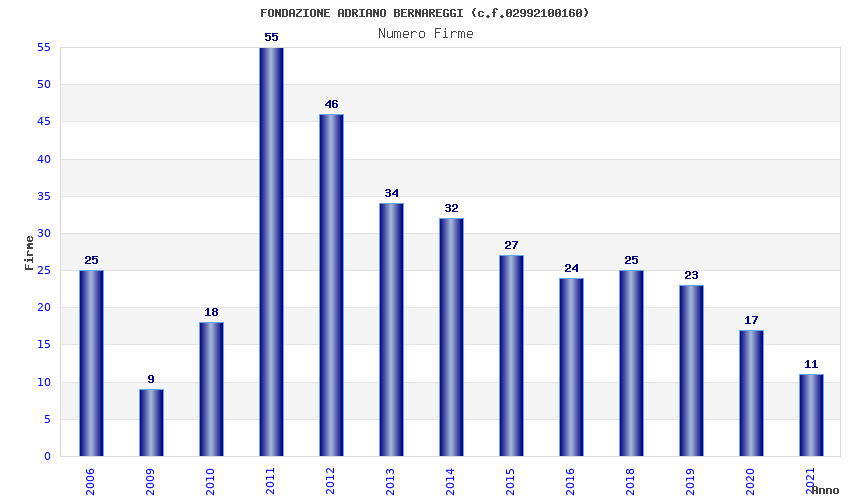 | Anno | Firme | Importi | Media | Naz. | Reg. | Prov. | Comu. |