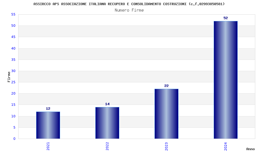 | Anno | Firme | Importi | Media | Naz. | Reg. | Prov. | Comu. |
