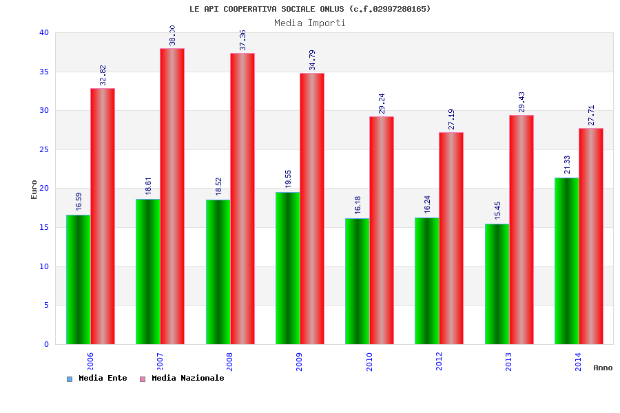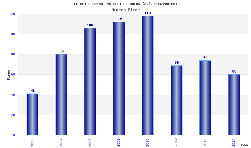 | Anno | Firme | Importi | Media | Naz. | Reg. | Prov. | Comu. |
