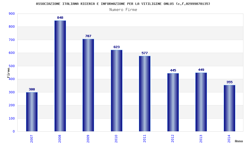 | Anno | Firme | Importi | Media | Naz. | Reg. | Prov. | Comu. |