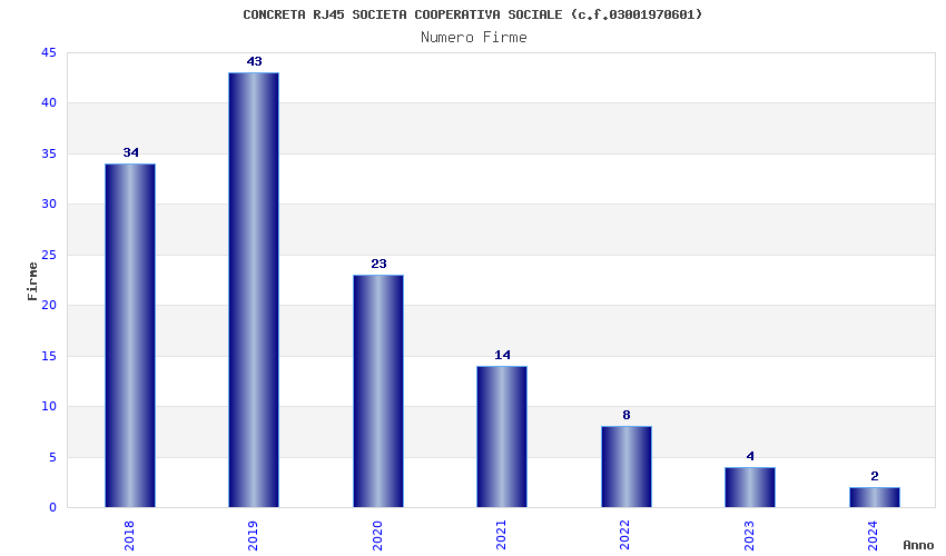 | Anno | Firme | Importi | Media | Naz. | Reg. | Prov. | Comu. |