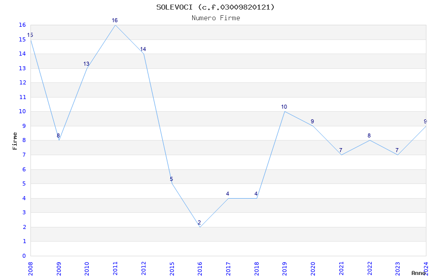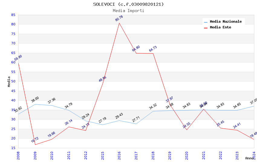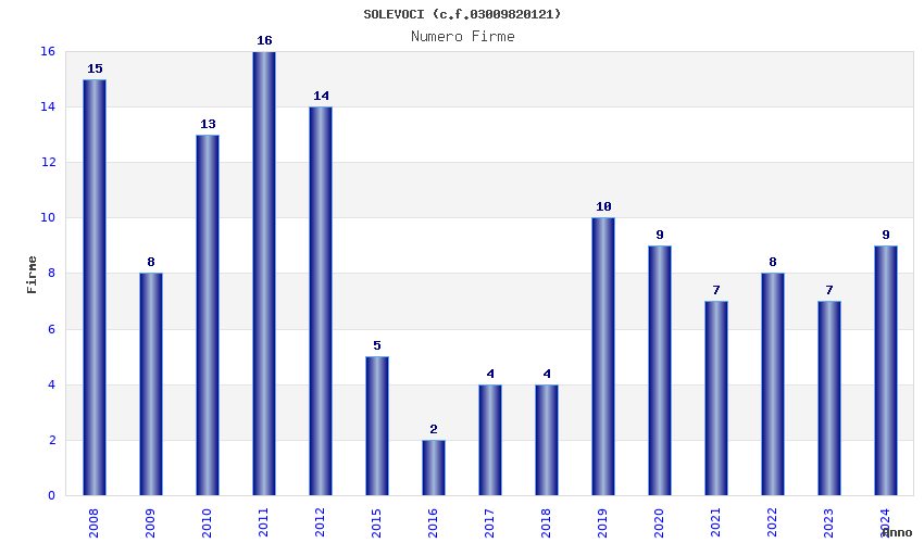 | Anno | Firme | Importi | Media | Naz. | Reg. | Prov. | Comu. |